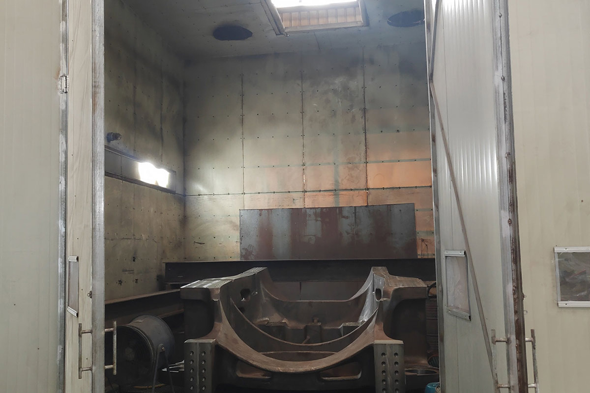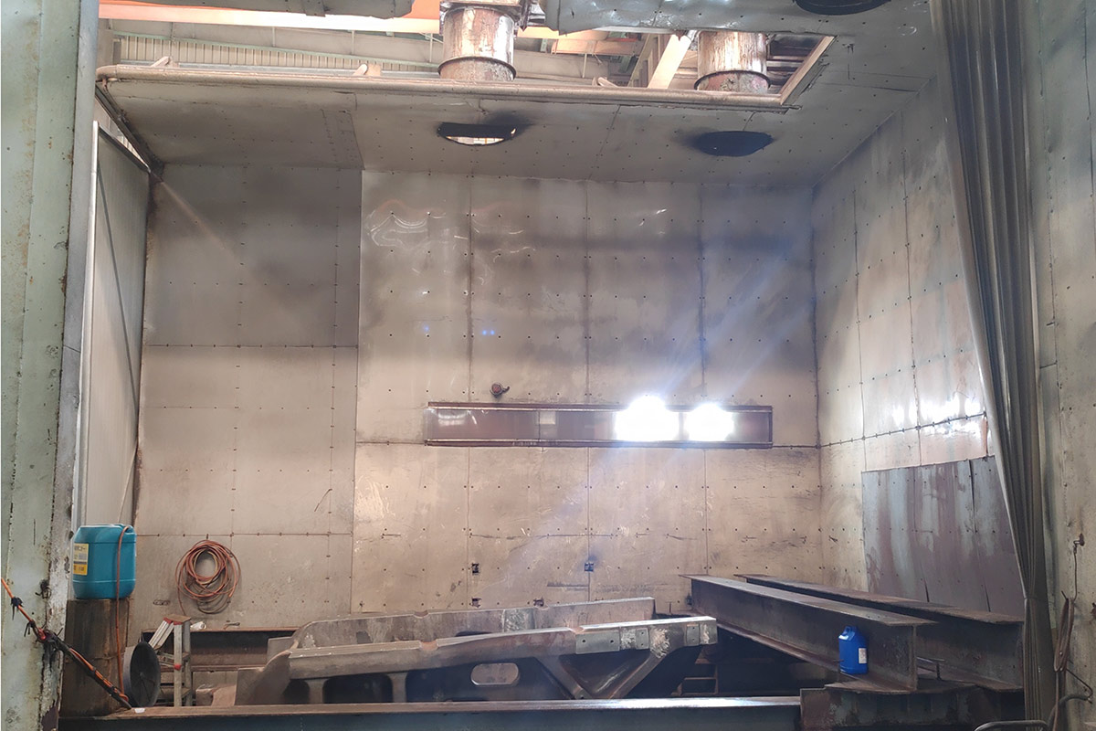 重工产品去油污 清洗房 工艺:热水+清洗剂去油污 工件吊装方式:行车一半敞开