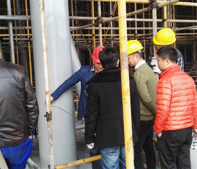宁波派挺防腐业务与技术团队于年初对该项目进行涂层方案设计后论证,并制定出严格的施工流程与标准。2017年2月17日,派挺工业与业主正式签订合同。派挺防腐项目部与2月20日进场施工。为期40天,就圆满完成了该建筑的喷涂项目,并得到设计院及防腐专家的一致认可。
