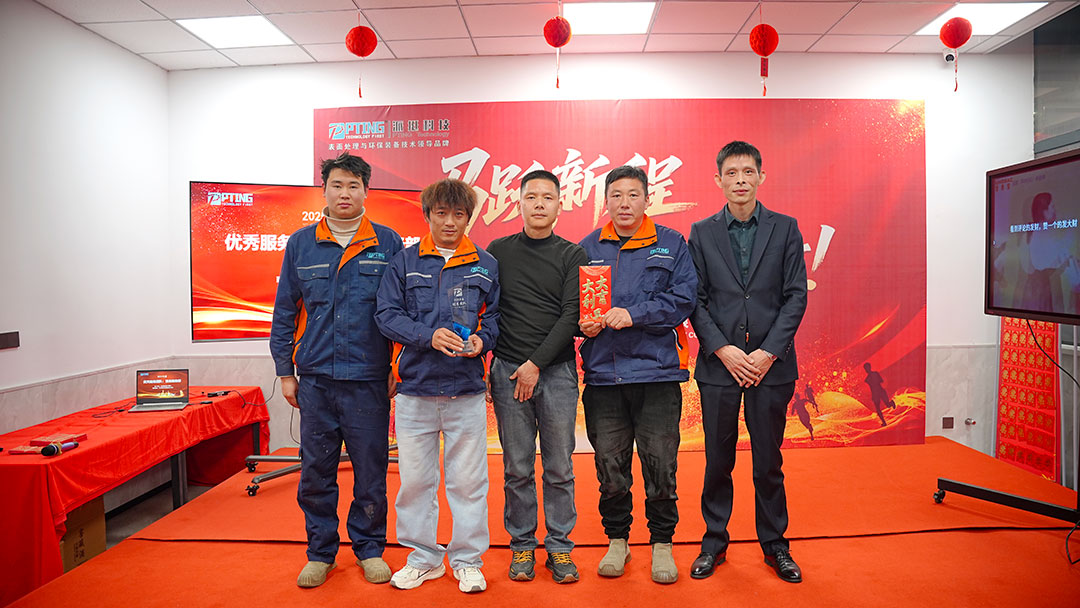 回顾2025年的工作成果,徐昊总经理对过去一年各部门的工作表现给予了高度评价:全体员工历经一年的艰苦奋斗,公司产值销售双翻翻,在市场行业拓展、产品研发创新、客户服务品质等方面都取得了优异成绩。公司在服务好厨电小家电领域基本盘的同时,也深入探索和研究新的业务领域,尤其在半导体零部件的清洗、半导体陶瓷材料微粉专用精密喷砂设备、汽配新能源领域专用喷砂设备、人工智能周边表面喷砂处理等方面,积累了国内行业内领先的经验,为此类设备的国产替代夯实基础。
